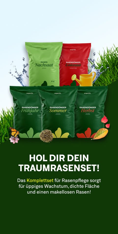 Mit diesen 3 wachstumstreibenden Produkten ist Dein Rasen das ganze Jahr über zufriedengestellt. Entwickelt für drei Jahreszeiten und jegliches Bedürfnis, wirst Du mit der organtic Dreier-Box einen gesunden und sattgrünen Rasen erleben - und das wissenschaftlich fundiert.